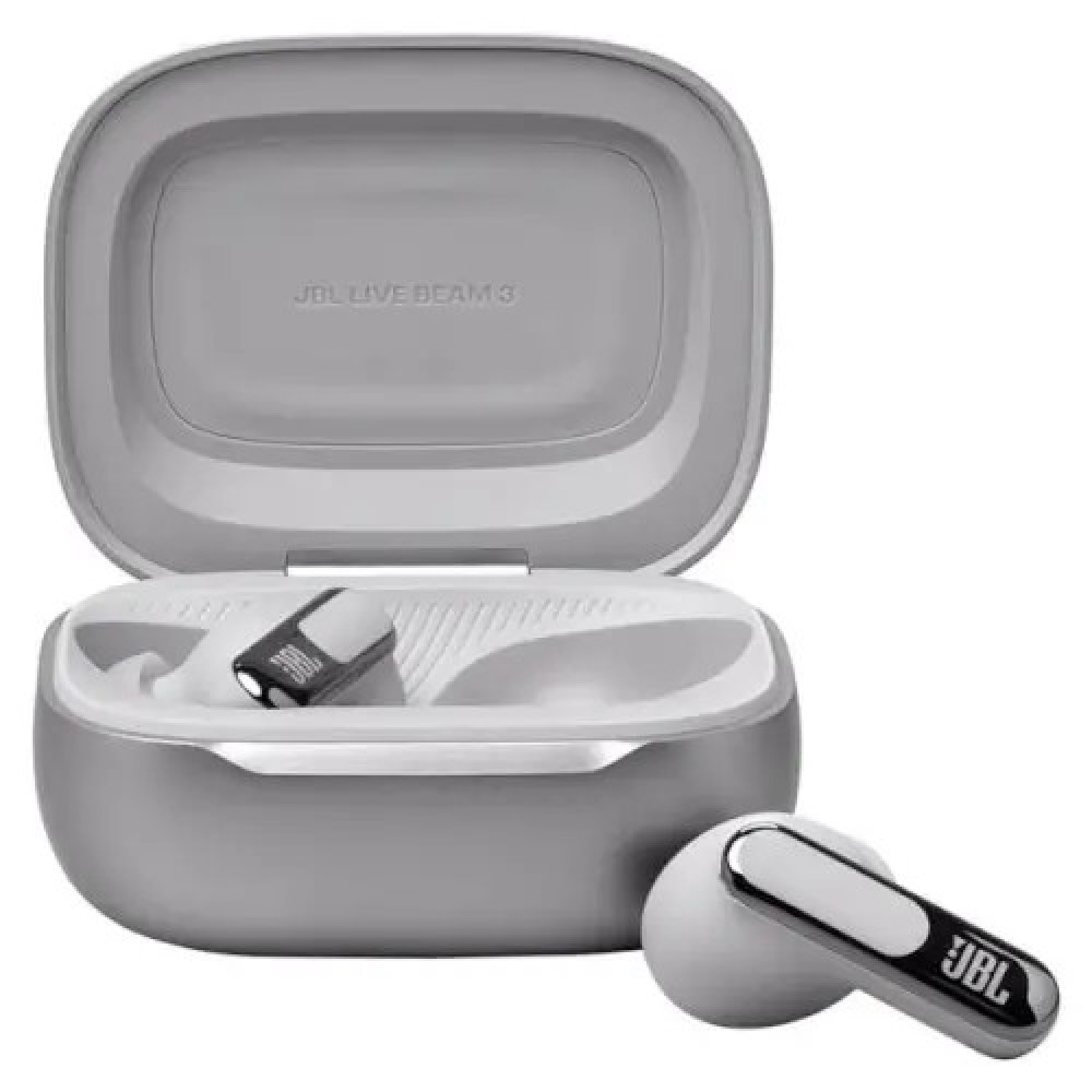 אוזניות אלחוטיות JBL מסדרת Live דגם Live Beam 3 בצבע כסוף, בתצורת In-Ear (True Wireless) עם דרייברים דינמיים בגודל 10 מ"מ, כוללות ביטול רעשים אקטיבי (ANC) אדפטיבי, 6 מיקרופונים עם סינון רעשים לשיחות, טווח תדרים 20Hz–40kHz ועכבה של 16 אוהם. זמן נגינה של עד 12 שעות, זמן שיחה של עד 6 שעות (ANC כבוי), תמיכה בטעינה מהירה (10 דקות = עד 4 שעות שמע), טעינה אלחוטית, חיבור USB-C, תקן IP55 לעמידות בפני מים ואבק, שליטה באמצעות מגע, ומשקל של 5 גרם לאוזניות ו-72 גרם למארז. אחריות לשנה ע"י היבואן הרשמי.