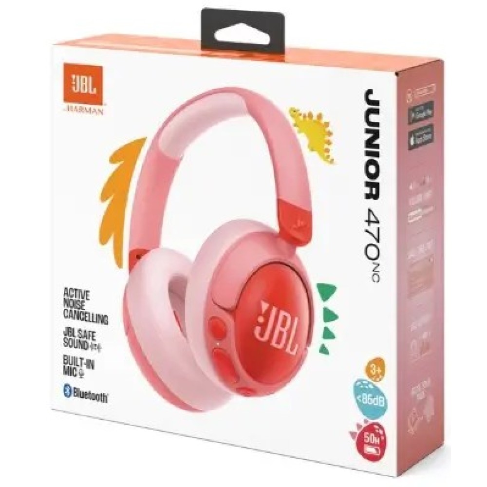 אוזניות אלחוטיות לילדים JBL מסדרת Junior דגם JBL Junior 470NC בצבע ורוד, בתצורת Over-Ear עם חיבור אלחוטי וכולל חוט (Bluetooth / 3.5 מ"מ), דרייברים דינמיים בגודל 32 מ"מ, ביטול רעשים אקטיבי (ANC), טווח תדרים 20Hz–20kHz, עכבה של 35 אוהם ורגישות של 83dB. תומכות ב-Bluetooth 5.3, זמן נגינה של עד 50 שעות (ANC כבוי) ועד 28 שעות (ANC פעיל), זמן שיחה של עד 29 שעות (ANC כבוי), טעינה מהירה בפחות מ-2 שעות באמצעות USB-C, שליטה באמצעות כפתורים פיזיים, תמיכה באפליקציית JBL Headphones, ומשקל של 196 גרם. אחריות לשנה ע"י היבואן הרשמי.