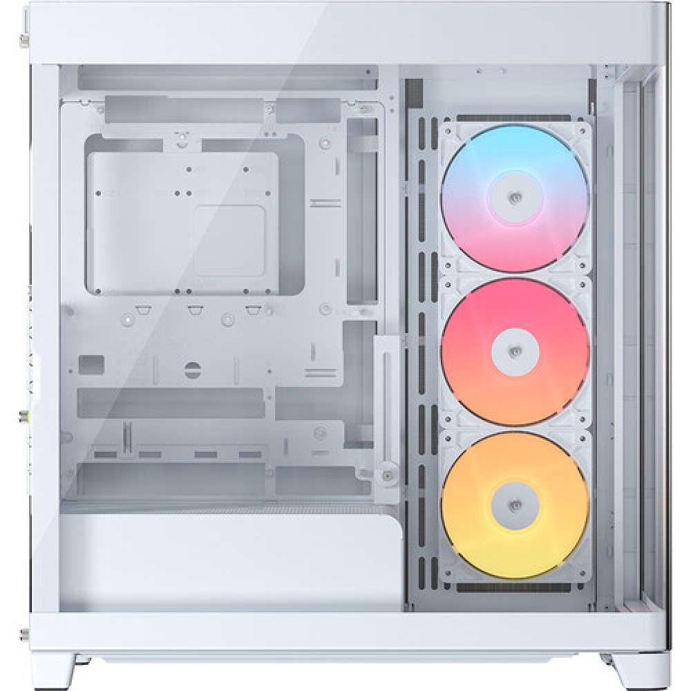 מארז מחשב בצבע לבן, מסוג Mid Tower, תואם ללוחות אם Mini ITX, Micro ATX, ATX ו-E-ATX, עם דופן צד זכוכית מחוסמת (שמאל) ופלדה (ימין), עשוי פלדה, זכוכית מחוסמת ופלסטיק, כולל 7 חריצי הרחבה אופקיים ו-3 אנכיים, 1 מפרץ 3.5" ו-2 מפרצי 2.5", יציאות קדמיות USB 3.2 Gen 2x2 Type-C, USB 3.2 Gen 1 Type-A x2 ו-Audio In/Out, כולל מאווררי RS-R ARGB, תמיכה ברדיאטורים עליונים וצדדיים עד 360/280/240 מ"מ ואחורי עד 140/120 מ"מ, גובה מקסימלי לקירור מעבד 185 מ"מ, אורך מקסימלי לכרטיס מסך 460 מ"מ ולספק כוח 250 מ"מ, פילטר אבק, ניהול כבלים עד 37 מ"מ, תמיכה בלוח אם הפוך ובמעמד אנכי לכרטיס מסך (נמכר בנפרד), משקל 14.26 ק"ג, ואחריות לשנתיים ע"י היבואן.