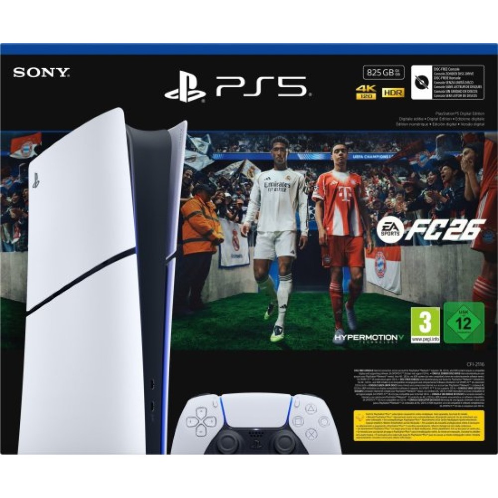 קונסולת משחק Sony PlayStation 5 Slim 825GB Digital Edition + קוד דיגיטלי להורדת המשחק FC26