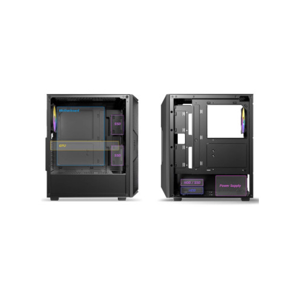 | NotesMaximum GPU Length ≤ 320 mm | Thermal DesignIncluded ARGB Fans: Front & Rear 4x120mm | Front PortsUSB 2.0 \ USB 3.0 \ Earphone/Mic \ RGB Controller |
