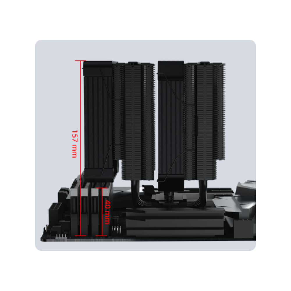 | Built-in Fan (mm)130 | Height (mm)160 | CPU Socket1155 \ 1150 \ 1151 \ AM4 \ 1200 \ 1700 \ AM5 \ 1851 |