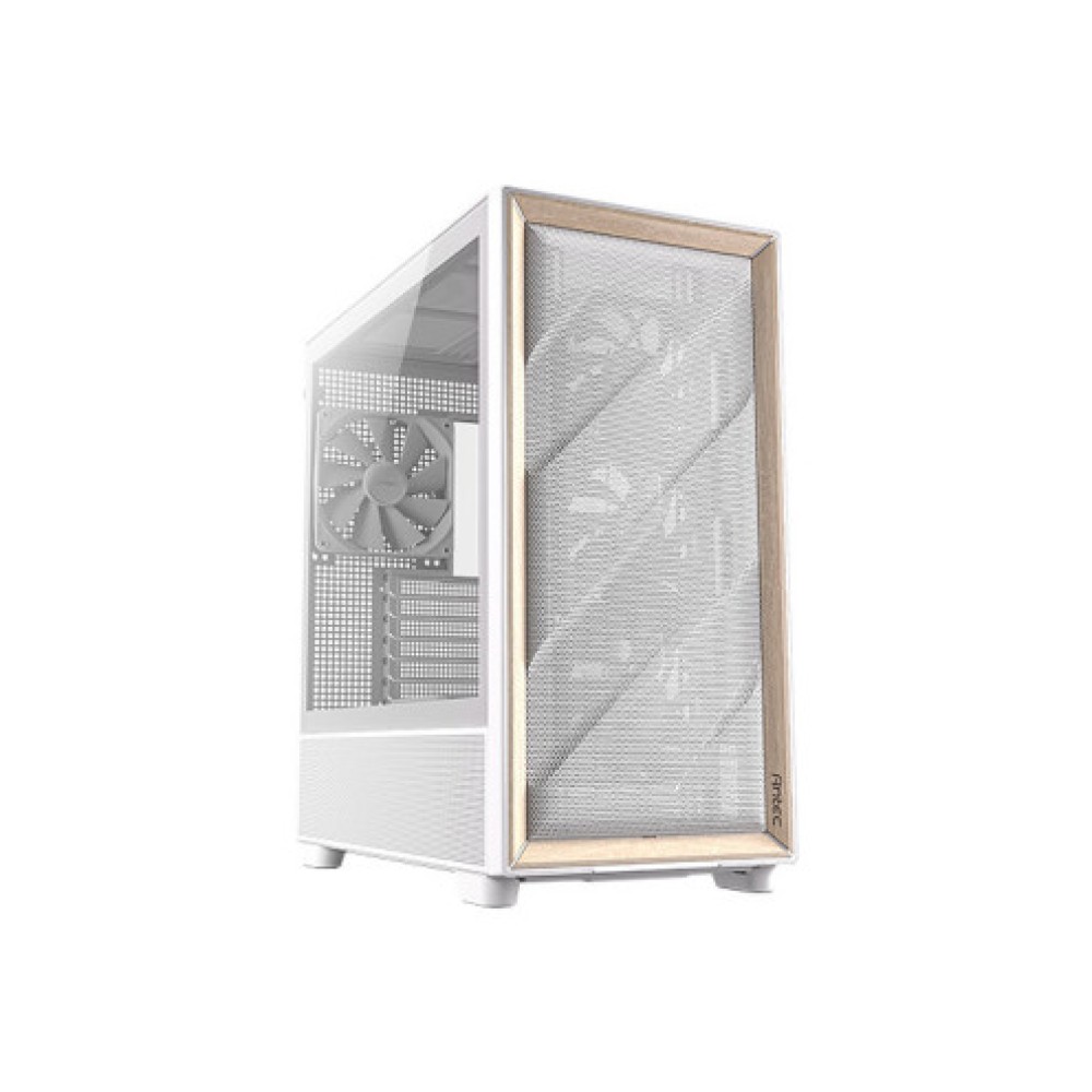 Mid Tower case in white, compatible with ATX, Micro ATX, E-ATX, and Mini ITX motherboards. The dimensions of the case are 239 mm width, 502 mm height, and 484 mm depth. The case is equipped with front USB 3.0, Earphone/Mic, and USB Type-C ports. It supports the installation of up to 2 hard drives of 3.5 inches and up to 3 hard drives of 2.5 inches. The maximum height for CPU cooling is 180 mm. The thermal design includes fans with PWM technology: 3 x 120 mm fans at the front, 1 x 120 mm fan on the power supply cover, and 1 x 140 mm fan at the rear. The maximum length for a graphics card is 408 mm.
