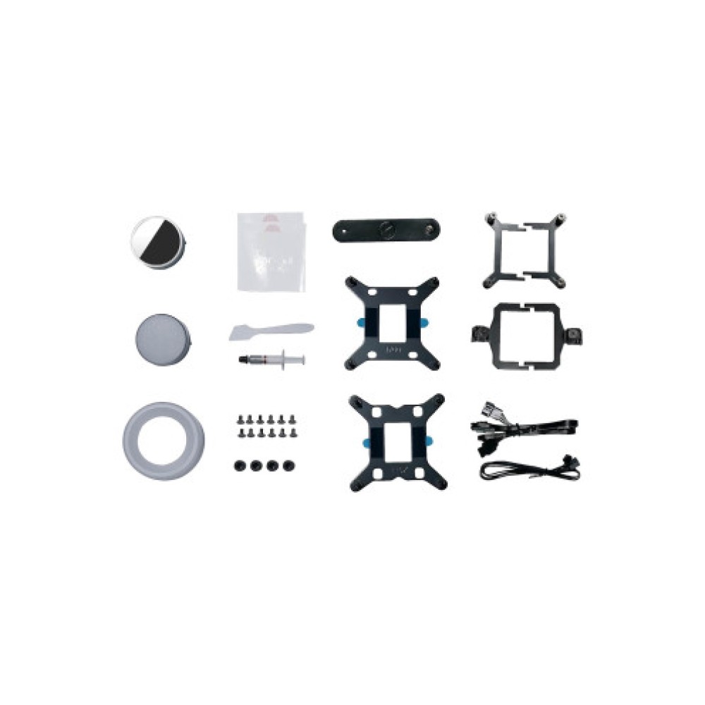 High-quality water cooling designed for processors with sockets 1155, 1150, 1151, AM4, 1200, 1700, AM5, and 1851. The system includes three radiators that ensure efficient heat dissipation, and a built-in 120mm fan that allows for optimal airflow. The product does not include lighting, providing a discreet and aesthetic solution for various computer systems.