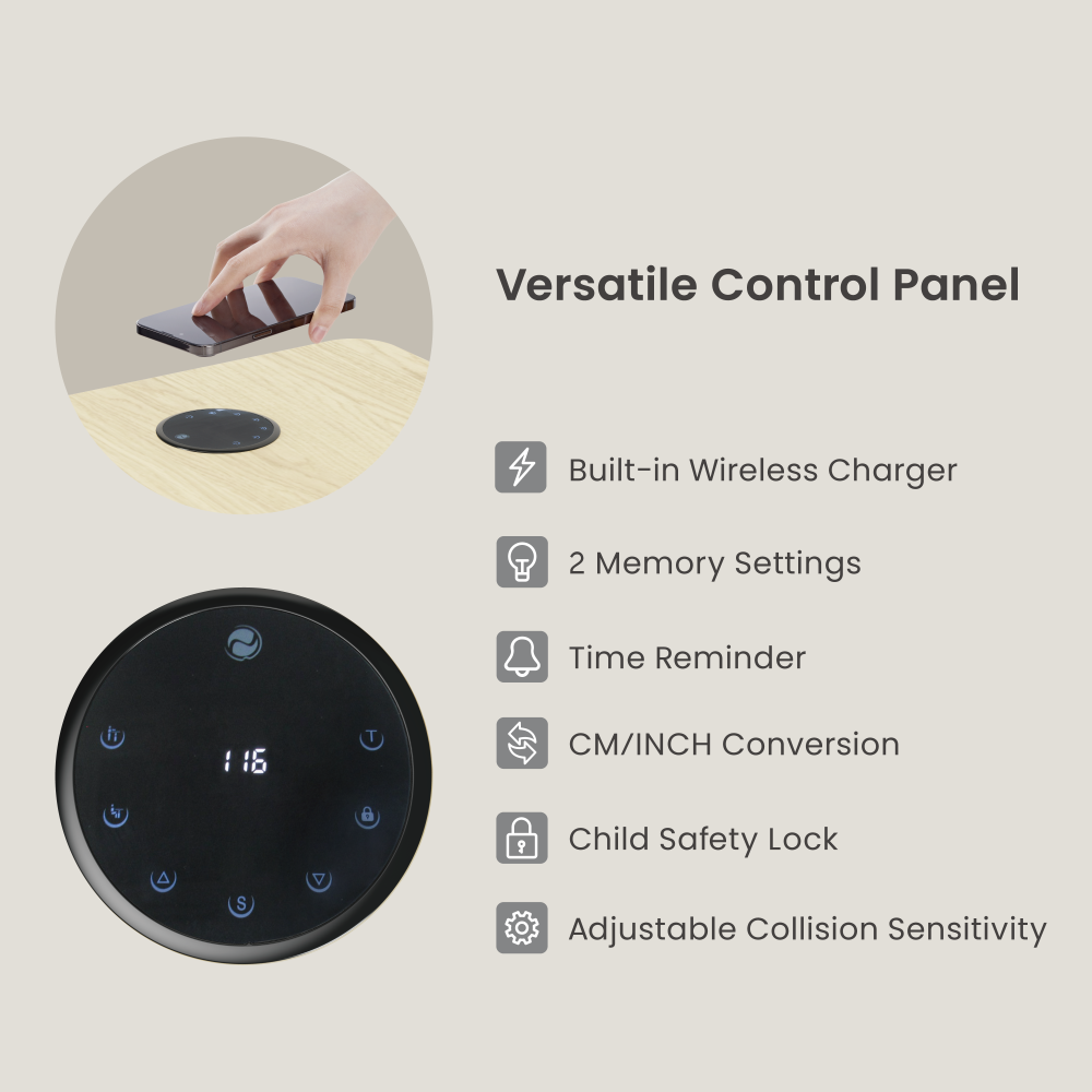 | Controller typeDigital touch panel | Digital controller with memoryYes (2 memory settings) | Sit/stand reminder modeYes |
