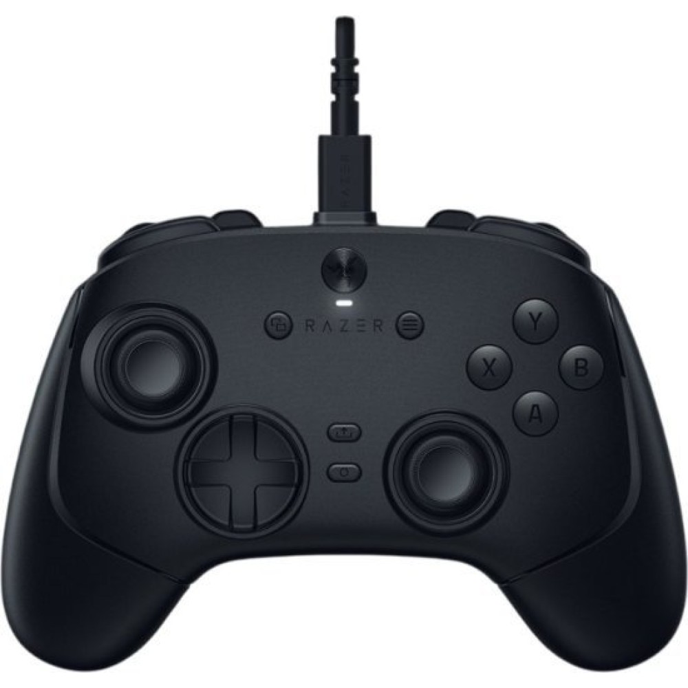 Wired gaming controller Razer model RZ06-05550100-R3M1 in black, compatible with PCs running Windows 11 (64-bit and above). Features wired connectivity with a lightweight, braided, detachable 2-meter cable. The controller includes 6 customizable buttons (4 rear buttons and 2 Claw Grip buttons), Razer Mecha-Tactile action buttons, Hall Effect triggers with Trigger Stops, Haptic Feedback vibration, a floating 8-way D-Pad, and precise TMR analog thumbsticks. Supports Razer Synapse 4 software for advanced customization. Dimensions: 156.7 × 105.7 × 65 mm Weight: 198 g Includes 2-year warranty from the official importer.