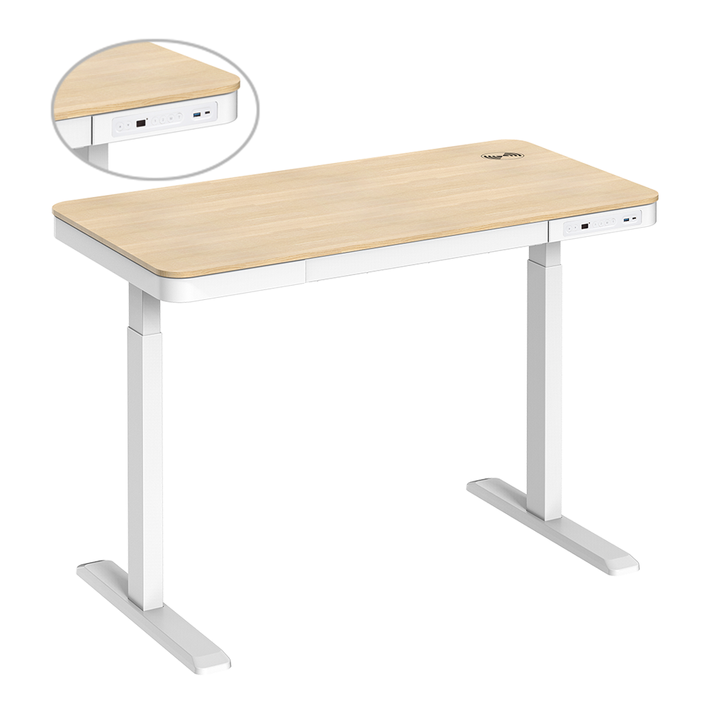 Specifications Single-motor height-adjustable desk with drawer and wireless charger — White, Natural Wood