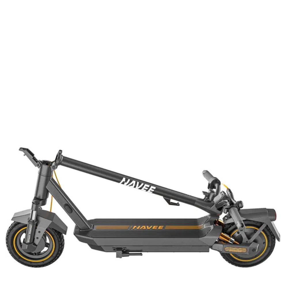 The Navee GT3 Electric Scooter reaches a top speed of 25 km/h and offers a range of up to 50 km on a single charge. It features a rear-wheel motor, a dual braking system, 10-inch tubeless tires, and a dual suspension system for improved comfort and stability. The digital display shows speed, battery level, error codes, and more. It supports Bluetooth connectivity and can be paired with the Navee App. The 358.02 Wh battery charges in approximately 8 hours. The scooter weighs about 21 kg and has IPX5 water and dust resistance. It is foldable and suitable for riders aged 16 to 50. Includes a 1-year warranty by the official importer (Hamilton).