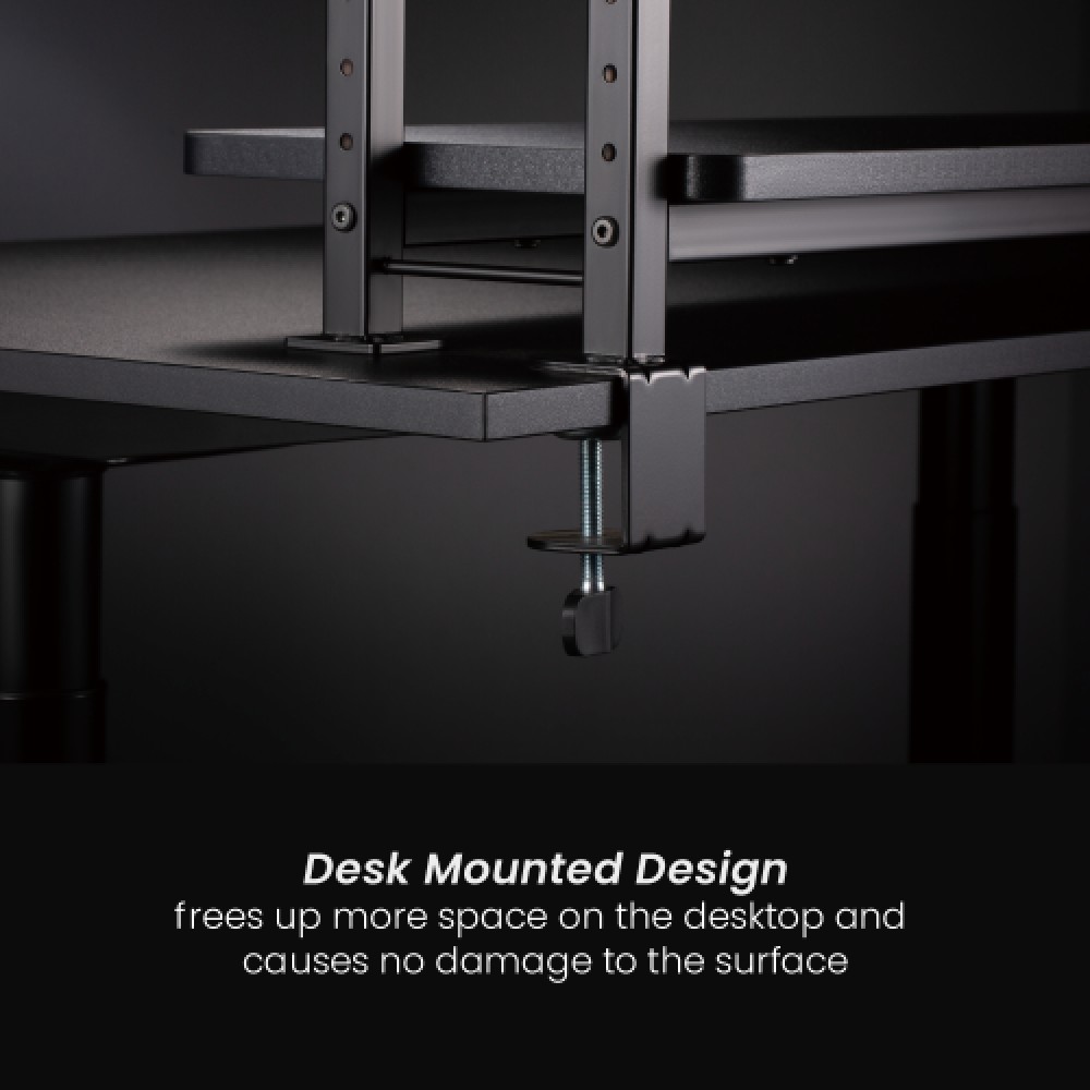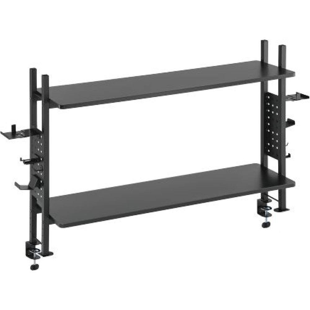 | Product TypeGaming desktop shelf with clamp | Surface finishPowder coating, melamine sticker | ColorMatte Black |