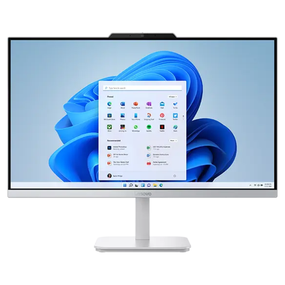 מחשב All in One Lenovo דגם Lenovo A100 All in One 23.8 בצבע Cloud Grey, עם מסך בגודל 23.8" ורזולוציה 1920×1080 מסוג IPS ובהירות 250 ניט, מעבד Intel Core i3-N305 עד 3.8GHz עם 8 ליבות, זכרון פנימי בנפח 32GB מסוג DDR4 3200MT/s, אחסון 1TB M.2 PCIe NVMe SSD, גרפיקה Intel UHD Graphics, מערכת הפעלה Windows 11 Home, מצלמה 5MP, רמקולים סטריאו 2x2W, משקל 4.3 ק"ג, ואחריות לשנה.