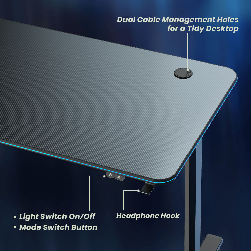 שולחן מחשב גיימינג עם תאורת RGB (1130×600×750 מ״מ) — שחור