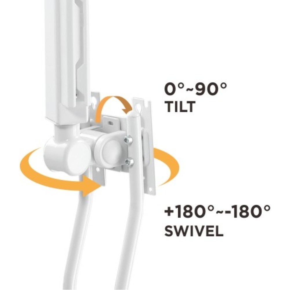 זרוע צג קפיץ גז לקיר בצבע Matte White, מתאימה למסך אחד בגודל 17"–32" ובמשקל 2–8 ק"ג, תואמת לתקן VESA 75x75 ו-100x100. כוללת סיבוב של 180°, הטיה של 0° עד 90°, סיבוב צדדי של 180°, כיוון גובה בעזרת קפיץ גז, כוונון חופשי, ניהול כבלים, ותמיכה במצב אופקי ואנכי. הזרוע עשויה מפלדה, אלומיניום ופלסטיק, עם אורך זרוע מרבי של 1780 מ"מ, מיועדת להתקנה על קיר קשיח, ומגיעה עם אחריות לשלוש שנים.