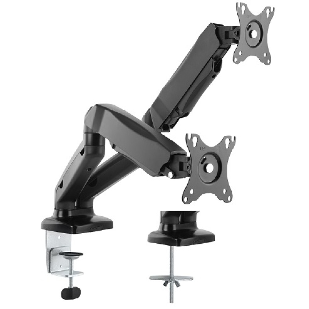 | סוג מוצרGas Spring Dual Monitor Arm | צבעMatte Black & Black / Matte White & White | אפשרויות התקנהClamp / Grommet |