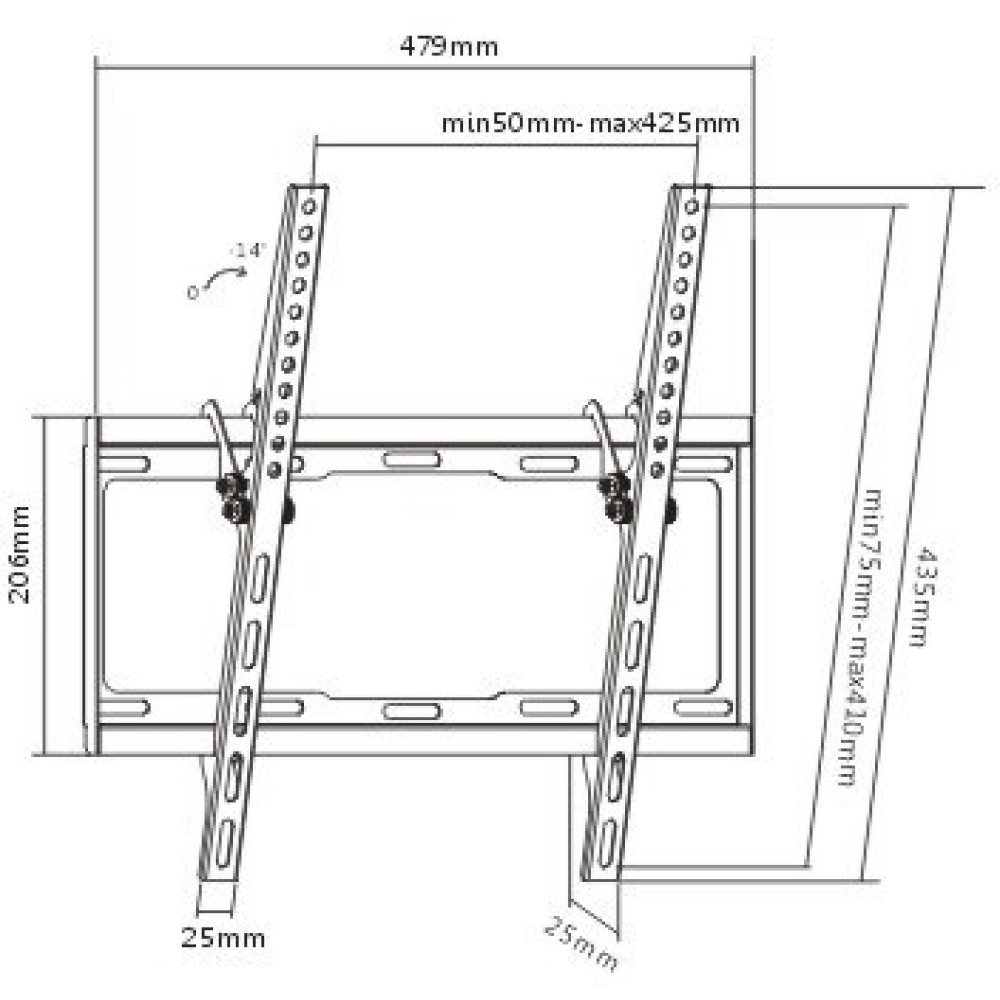 מפרט טכני מתקן תלייה חסכוני וצר עם הטייה לטלוויזיה LP34-44T