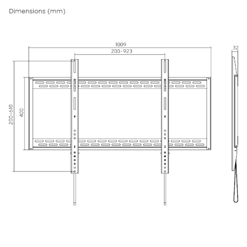 | סוג התקנהSolid Wall, Double Stud (406mm/450mm/600mm) | סוג לוח קירFixed Wall Plate | מידות הזרוע1009x630x32mm (39.7"x24.8"x1.3") |