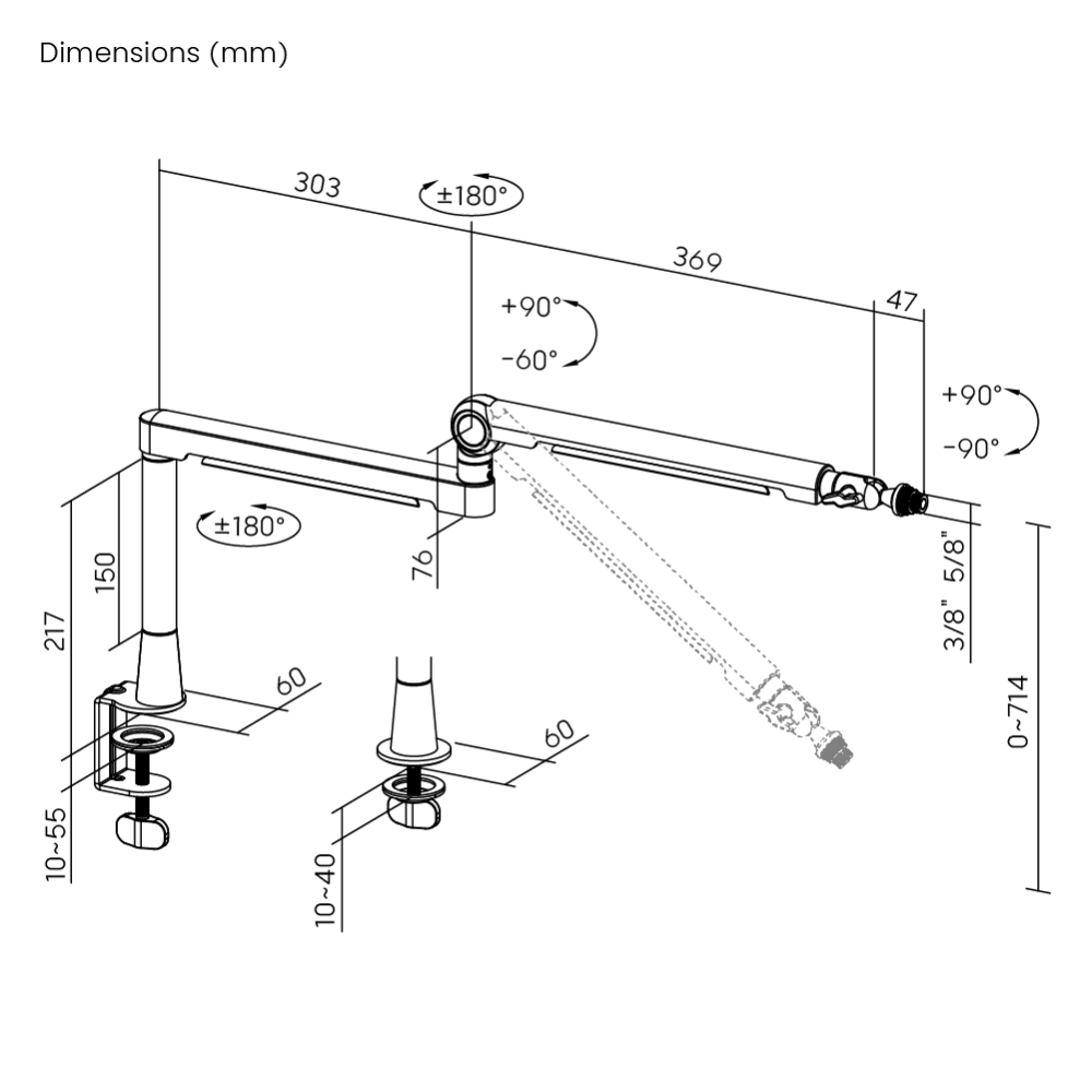 | סוג המוצר | זרוע מיקרופון מקצועית לשולחן |