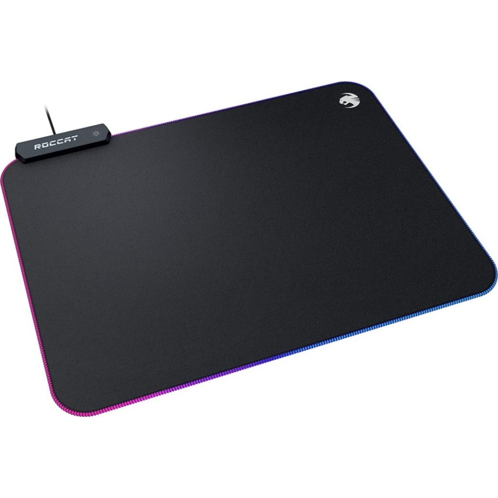 קובץ לעכבר גיימינג Roccat דגם ROC-13-370, בגודל 350×250×3.5 מ"מ, עשוי גומי עם משטח בד רך ונוגד החלקה. כולל תאורת RGB עם 2 אזורים ניתנים לתכנות.