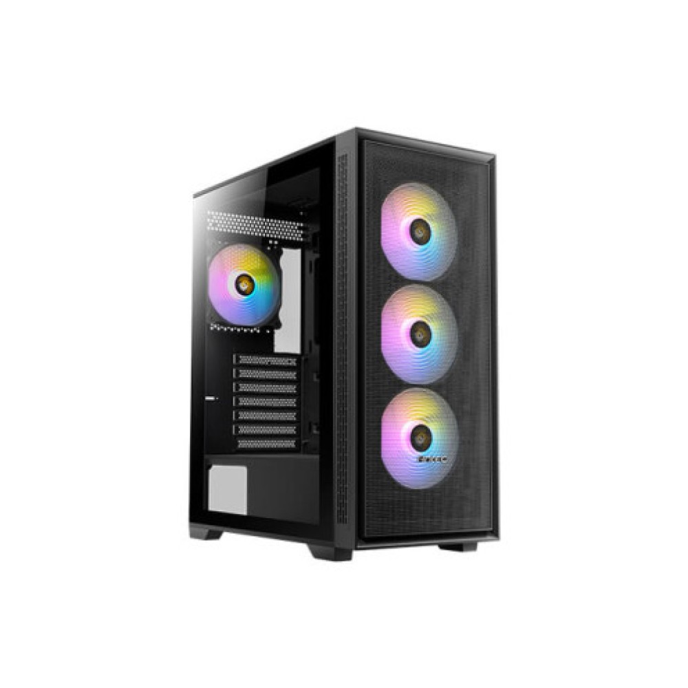 Корпус Mid Tower черного цвета, поддерживающий материнские платы формата ATX, Micro ATX, E-ATX и Mini ITX. Размеры корпуса составляют 210 мм в ширину, 485 мм в высоту и 421 мм в глубину. Корпус оснащен передними портами, включая USB 2.0, USB 3.0, разъем для наушников/микрофона и RGB контроллер. Можно установить до 2 жестких дисков размером 3.5 дюйма и 2 диска размером 2.5 дюйма, а также один дополнительный диск. Максимальная высота кулера для процессора составляет 160 мм. Тепловой дизайн включает ARGB вентиляторы с 3 вентиляторами размером 120 мм спереди и вентилятором размером 120 мм сзади.