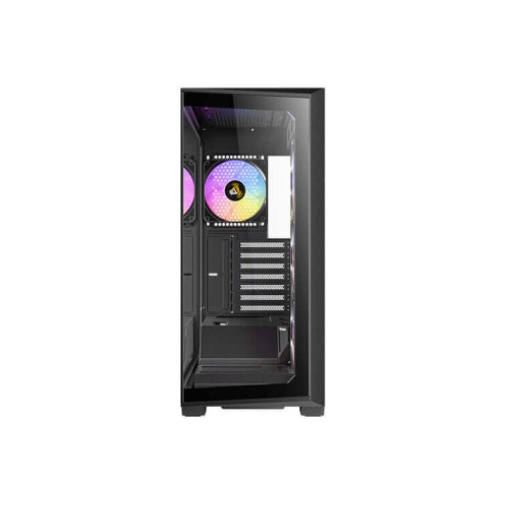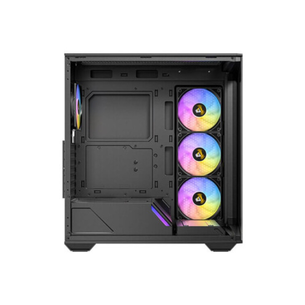 Корпус Mid Tower черного цвета, поддерживающий материнские платы формата ATX, Micro ATX и Mini ITX. Его размеры составляют 210 мм в ширину, 485 мм в высоту и 470 мм в глубину. Корпус оснащен передними выходами, включая USB 3.0, разъем Earphone/Mic, USB Type-C и RGB контроллер. ARGB подсветка интегрирована в корпус, с возможностью установки 1 жесткого диска размером 3.5 дюйма и 3+1 накопителей размером 2.5 дюйма. Максимальная высота для процессорного кулера составляет 160 мм. Тепловой дизайн включает ARGB вентиляторы, с 3 вентиляторами размером 120 мм с правой стороны и вентилятором размером 120 мм сзади. Максимальная длина графической карты составляет 415 мм.
