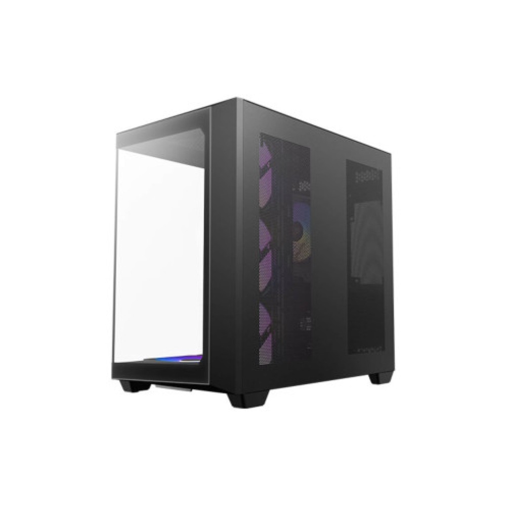 Корпус Mid Tower черного цвета, совместимый с материнскими платами формата ATX, Micro ATX и Mini ITX. Размеры корпуса составляют 285 мм в ширину, 400 мм в высоту и 469 мм в глубину. Корпус включает передние выходы для наушников/микрофона, USB Type-C, RGB контроллера и USB 3.2. Подсветка ARGB добавляет впечатляющие визуальные эффекты, с возможностью установки 1 жесткого диска формата 3.5 дюйма и 2 дисков формата 2.5 дюйма. Максимальная высота для процессорного кулера составляет 160 мм, а продвинутая термическая конструкция включает 7 вентиляторов ARGB диаметром 120 мм, обеспечивающих оптимальный воздушный поток.