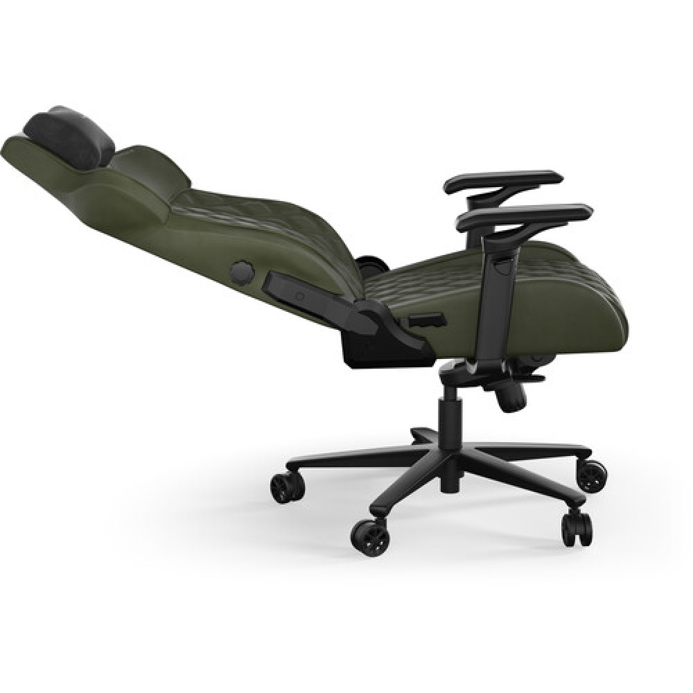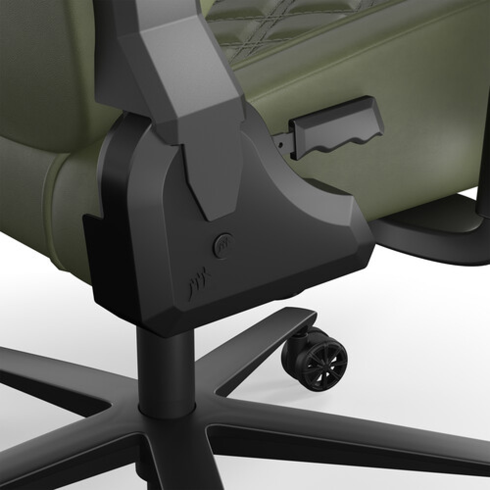 Игровое кресло Corsair TC500 LUXE — модель Sherwood в зелёном цвете изготовлено из ткани, стали и PU. Кресло оснащено механизмом наклона 0–10°, функцией блокировки наклона, регулируемым углом спинки 90–160° и возможностью отклонения до 155°. Мягкая спинка с прошивкой (quilted) имеет высоту 80 см и ширину плечевой зоны 55 см. Подушка для шеи крепится на магнитах и может быть снята. Кресло оснащено газлифтом класса Class 4 с ходом 100 мм и подлокотниками Omniflex 5D, регулируемыми во всех направлениях. В основании — стальная конструкция и колёса диаметром 65 мм. Высота сиденья регулируется от 48 до 58 см, глубина сиденья составляет 49 см, ширина — 59 см. Максимальная нагрузка — до 120 кг. Кресло подходит как для гейминга, так и для длительного комфортного использования. Гарантия — 2 года.