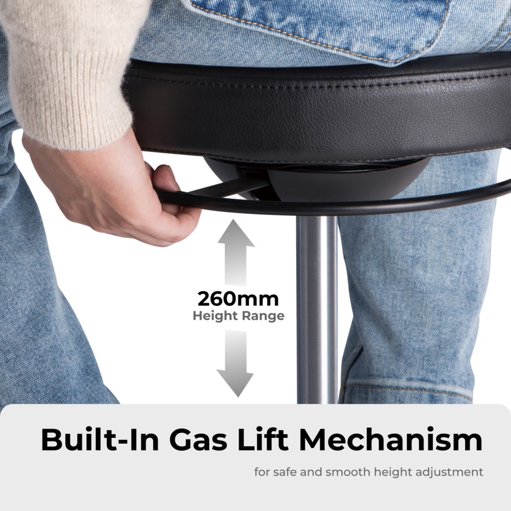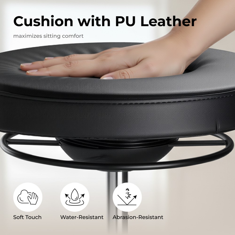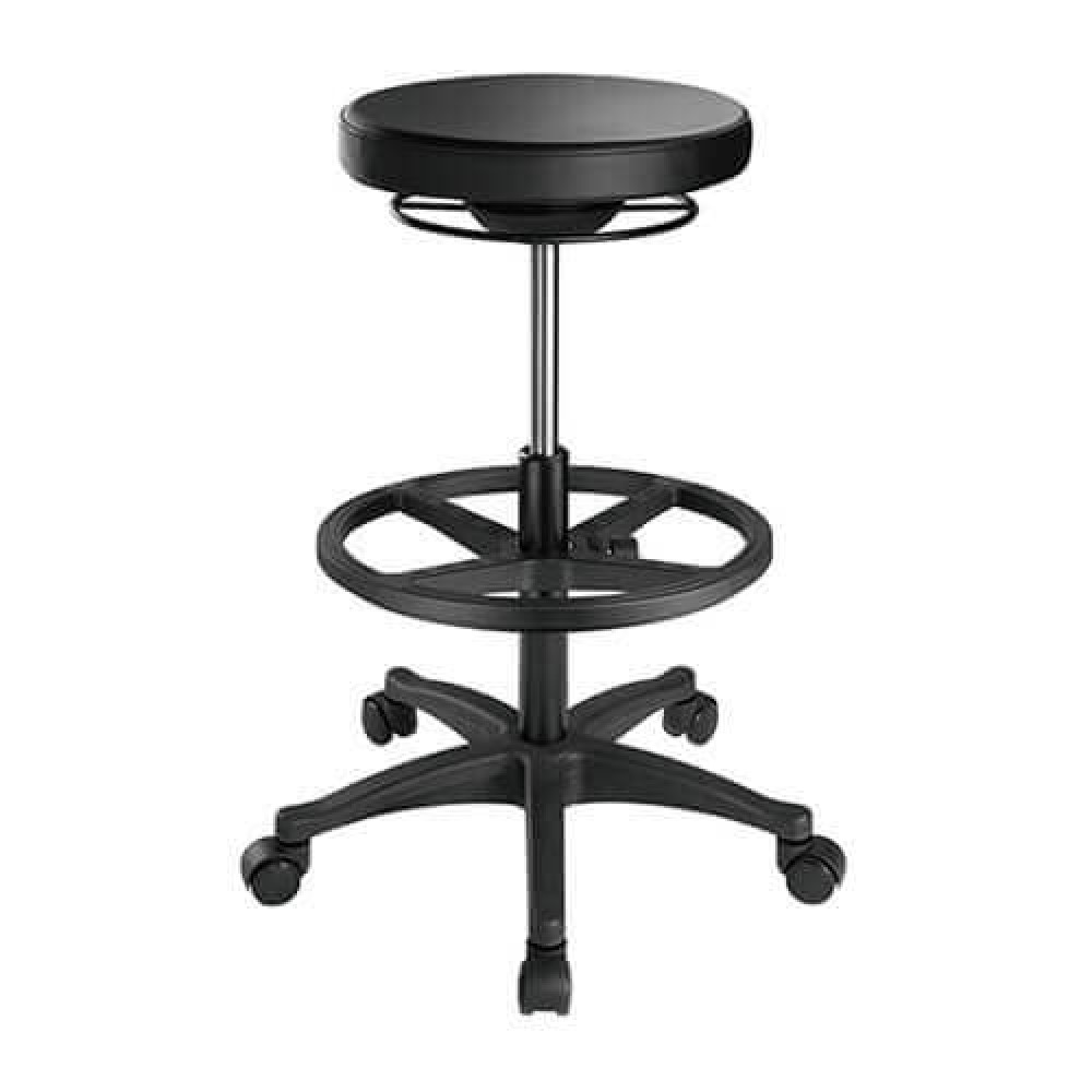 Эргономичный регулируемый по высоте стул от компании Lumi, модель CH04-12, в цвете черный/коричневый (Black/Brown). Отличается компактным дизайном, без спинки и подлокотников, подходит для активного сидения, рабочих стоек, зал ожидания или переговорных комнат. Оснащён сиденьем из прочной и водостойкой искусственной кожи (PU Leather), пневматическим подъемным механизмом с газлифтом класса 3, с регулируемой высотой от 600 до 860 мм, а также регулируемой подставкой для ног. Прочная конструкция с нейлоновым основанием и тихими колесами из полиуретана (PU), не оставляющими следов. Размеры: ширина 385 мм, глубина 385 мм. Максимальная нагрузка — до 100 кг.