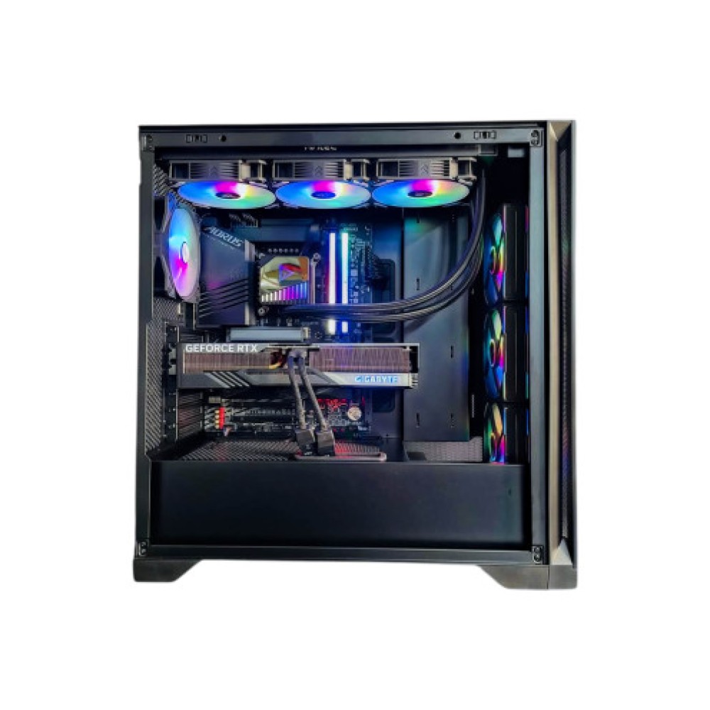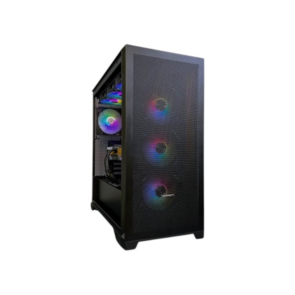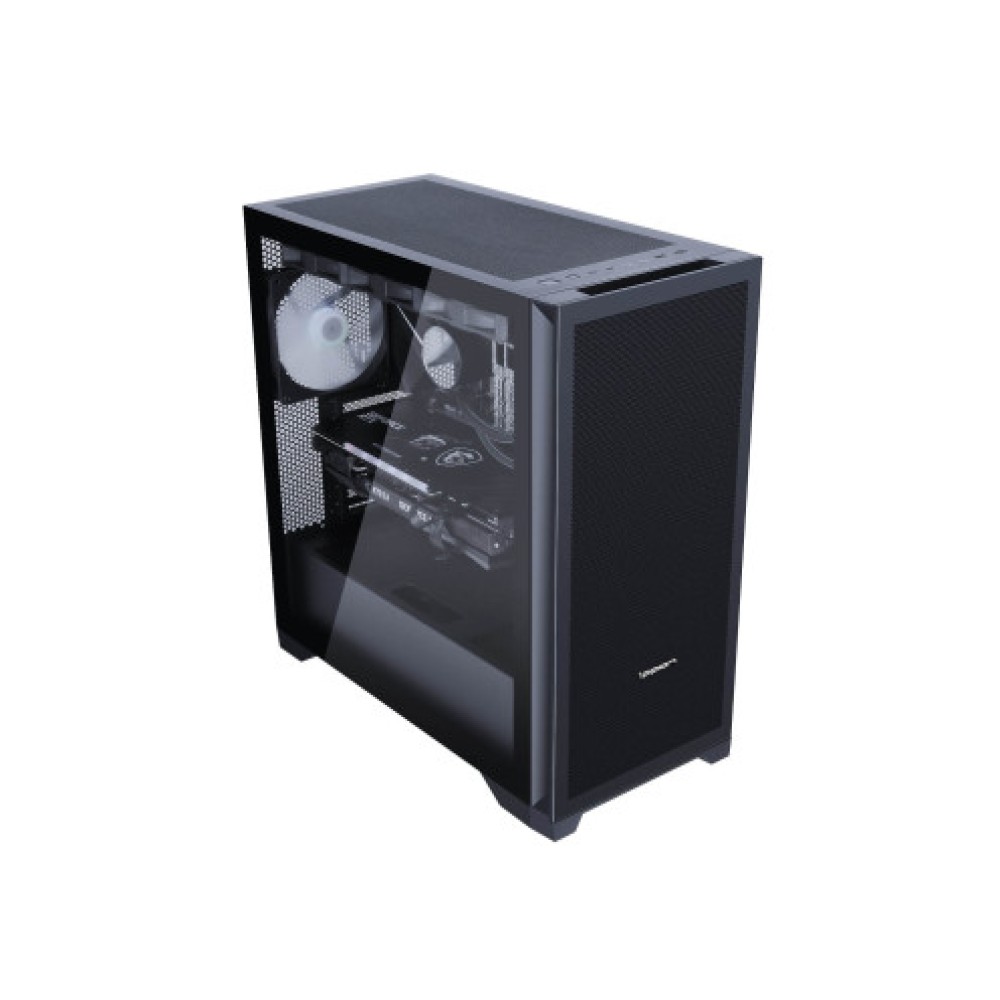 Корпус Full Tower черного цвета, предлагающий совместимость с материнскими платами ATX, Micro ATX и Mini ITX. Корпус включает передние порты USB 3.0, разъемы для наушников/микрофона и USB Type-C, что обеспечивает удобство в использовании. Подсветка ARGB добавляет эстетический штрих к системе. Корпус поддерживает два жестких диска размером 3.5 дюйма и обеспечивает максимальную высоту для охлаждения процессора в 180 мм, что позволяет устанавливать высокие и эффективные кулеры.