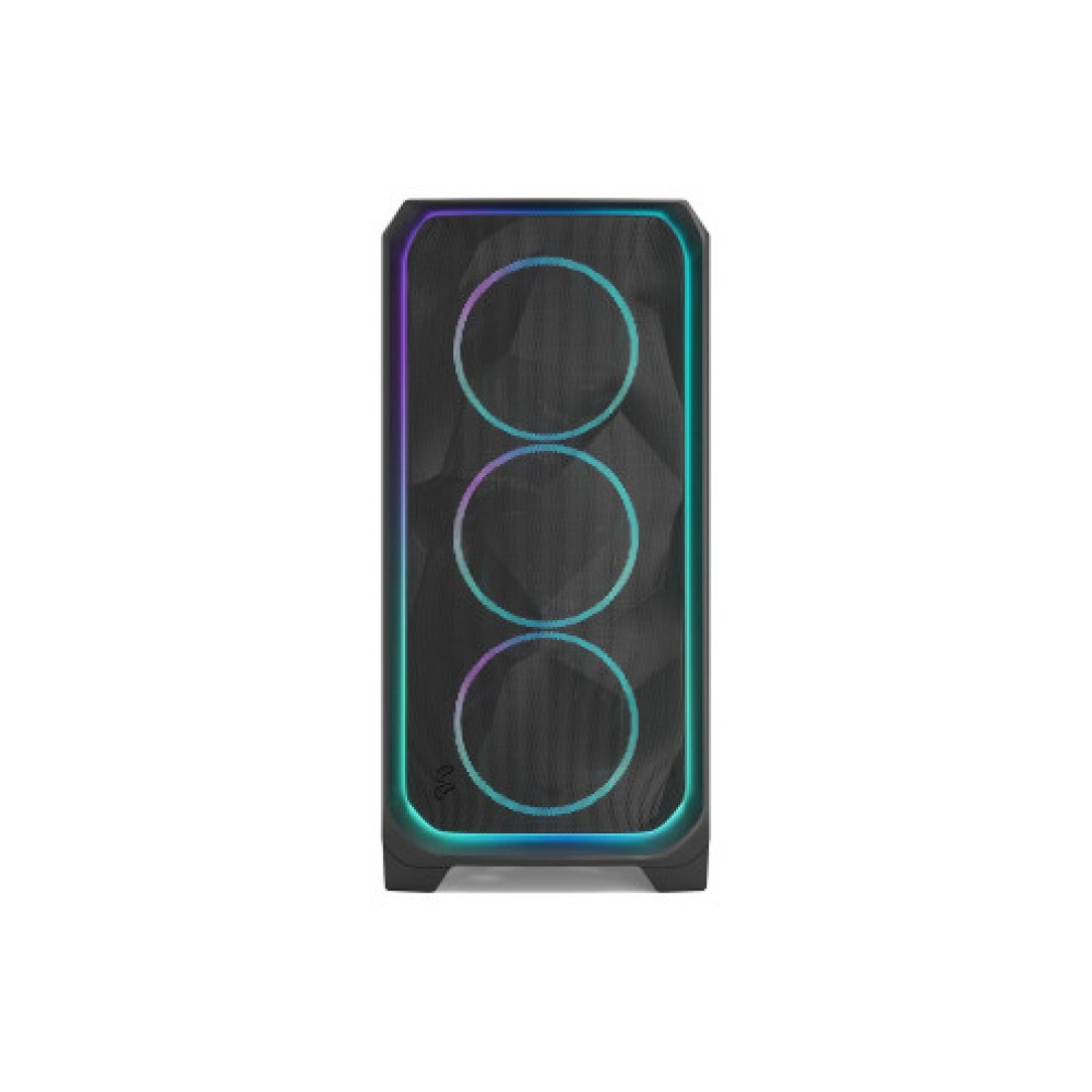 Корпус Full Tower черного цвета, поддерживающий материнские платы формата ATX, Micro ATX, E-ATX, Mini ITX, SSI-EEB, SSI-CEB и EE-ATX. Размеры корпуса составляют 245 мм в ширину, 515 мм в высоту и 575 мм в глубину. Корпус включает передние выходы для наушников/микрофона, USB Type-C и USB 3.2. Подсветка ARGB добавляет дизайнерский акцент, в то время как корпус оснащен вентиляторами Momentum RGB размером 140 мм (3 штуки) для улучшения теплового дизайна. Можно установить до 2 жестких дисков формата 3.5 дюйма и 5 жестких дисков формата 2.5 дюйма (1+4). Максимальная высота охлаждения для процессора составляет 180 мм. Корпус включает подсветку Ambient Case Lighting и регулируемый Pro Hub.