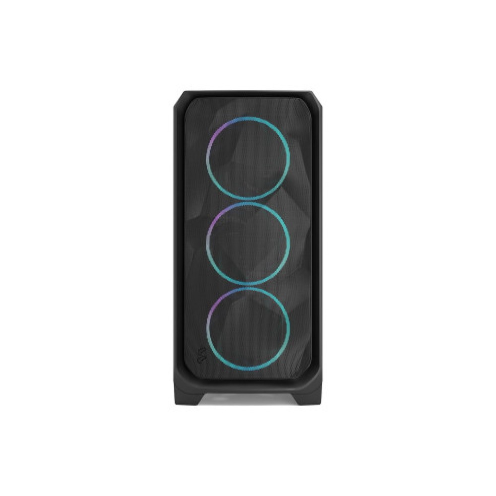 Корпус Full Tower черного цвета, совместимый с материнскими платами ATX, Micro ATX, E-ATX, Mini ITX, SSI-EEB, SSI-CEB и EE-ATX. Размеры корпуса составляют 245 мм в ширину, 515 мм в высоту и 575 мм в глубину. Корпус оснащен передними выходами, включая разъемы для наушников/микрофона, USB Type-C и USB 3.2. Подсветка ARGB добавляет эстетический штрих, в то время как термический дизайн включает 3 вентилятора Momentum RGB диаметром 140 мм. Корпус поддерживает установку 2 накопителей 3.5 дюйма и 5 накопителей 2.5 дюйма (1+4). Максимальная высота охлаждения для процессора составляет 180 мм, а максимальная длина графической карты — 512 мм.