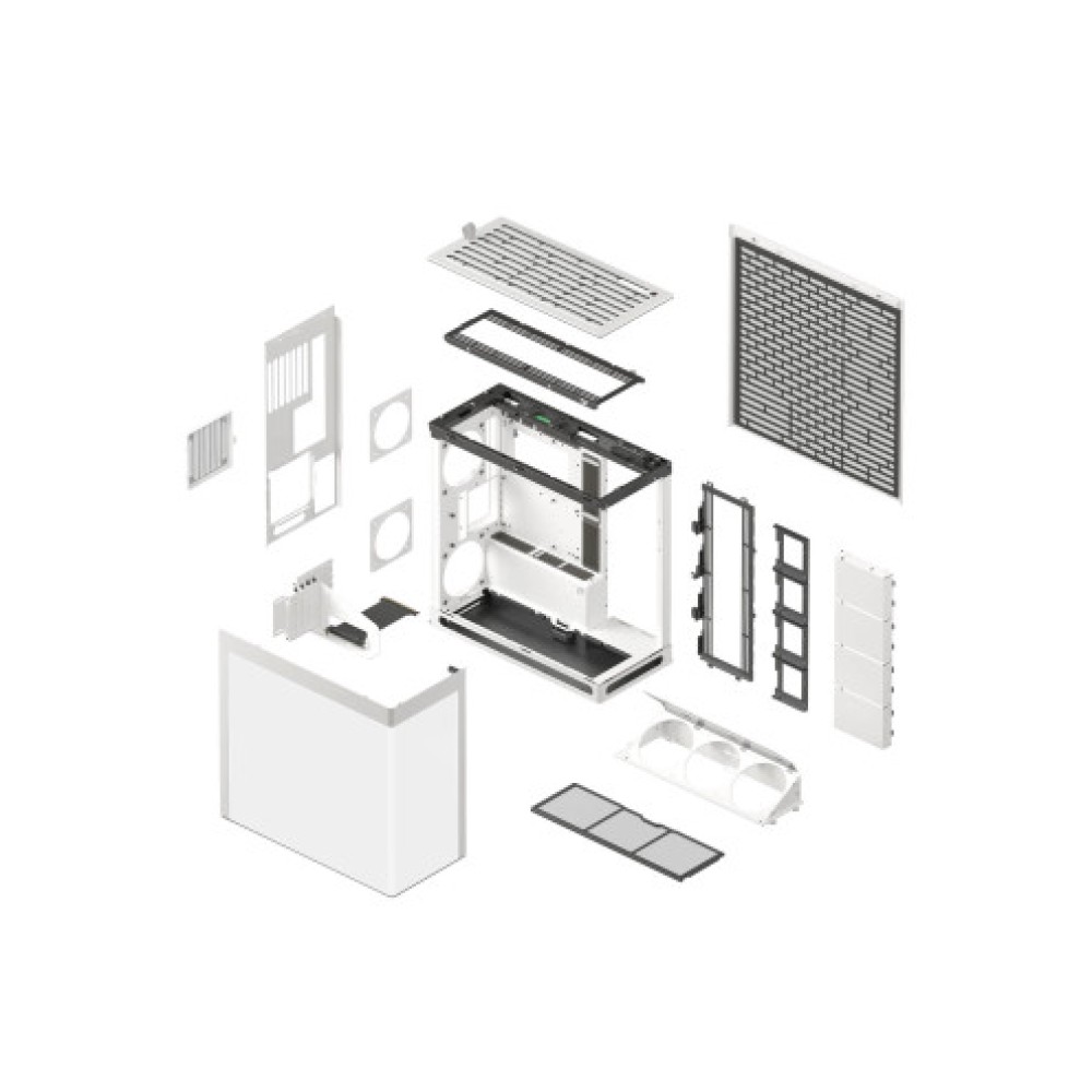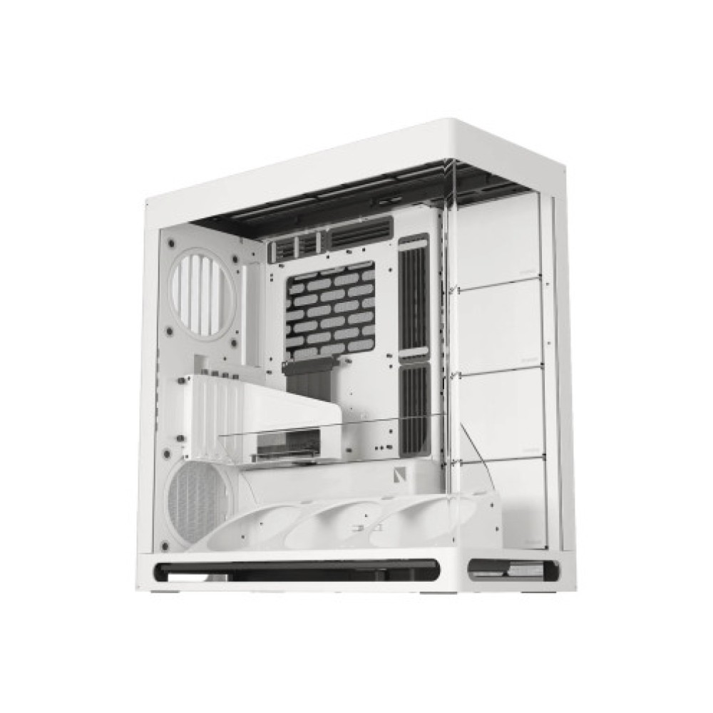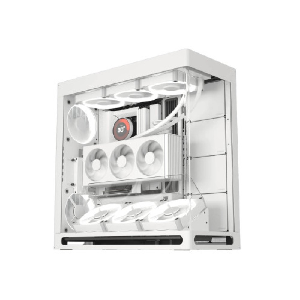Корпус Mid Tower белого цвета, поддерживает материнские платы ATX, Micro ATX, E-ATX и Mini ITX. Его размеры составляют 260 мм в ширину, 547 мм в высоту и 541 мм в глубину. Корпус оснащен передними выходами, включая разъемы для наушников/микрофона, USB Type-C и USB 3.2. Поддерживает блоки питания ATX, SFX и SFX-L. Может вмещать до 4+1 жестких дисков формата 3.5 дюйма и 8+2 жестких дисков формата 2.5 дюйма. Максимальная высота кулера для процессора составляет 185 мм, а его тепловой дизайн поддерживает установку до 11 вентиляторов.