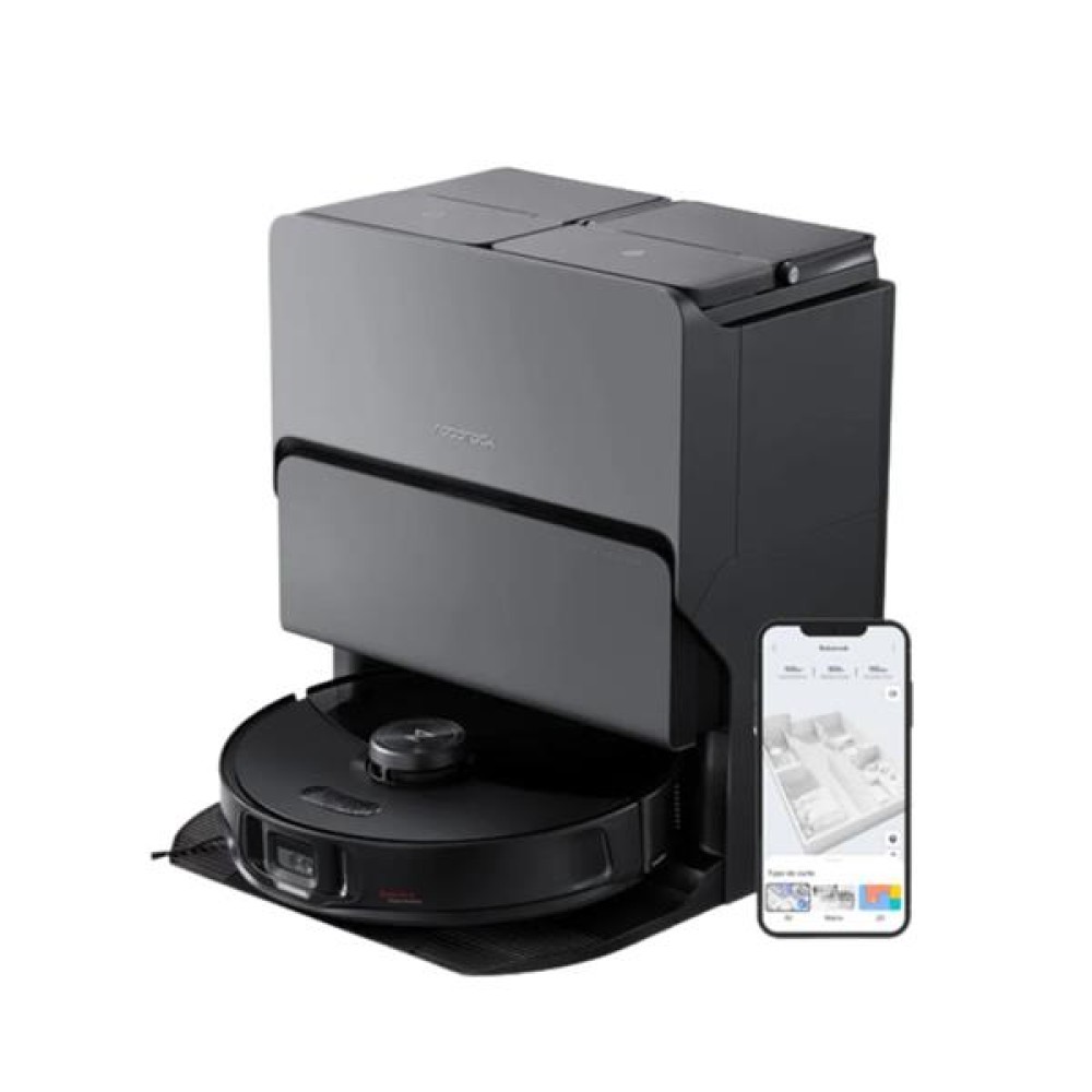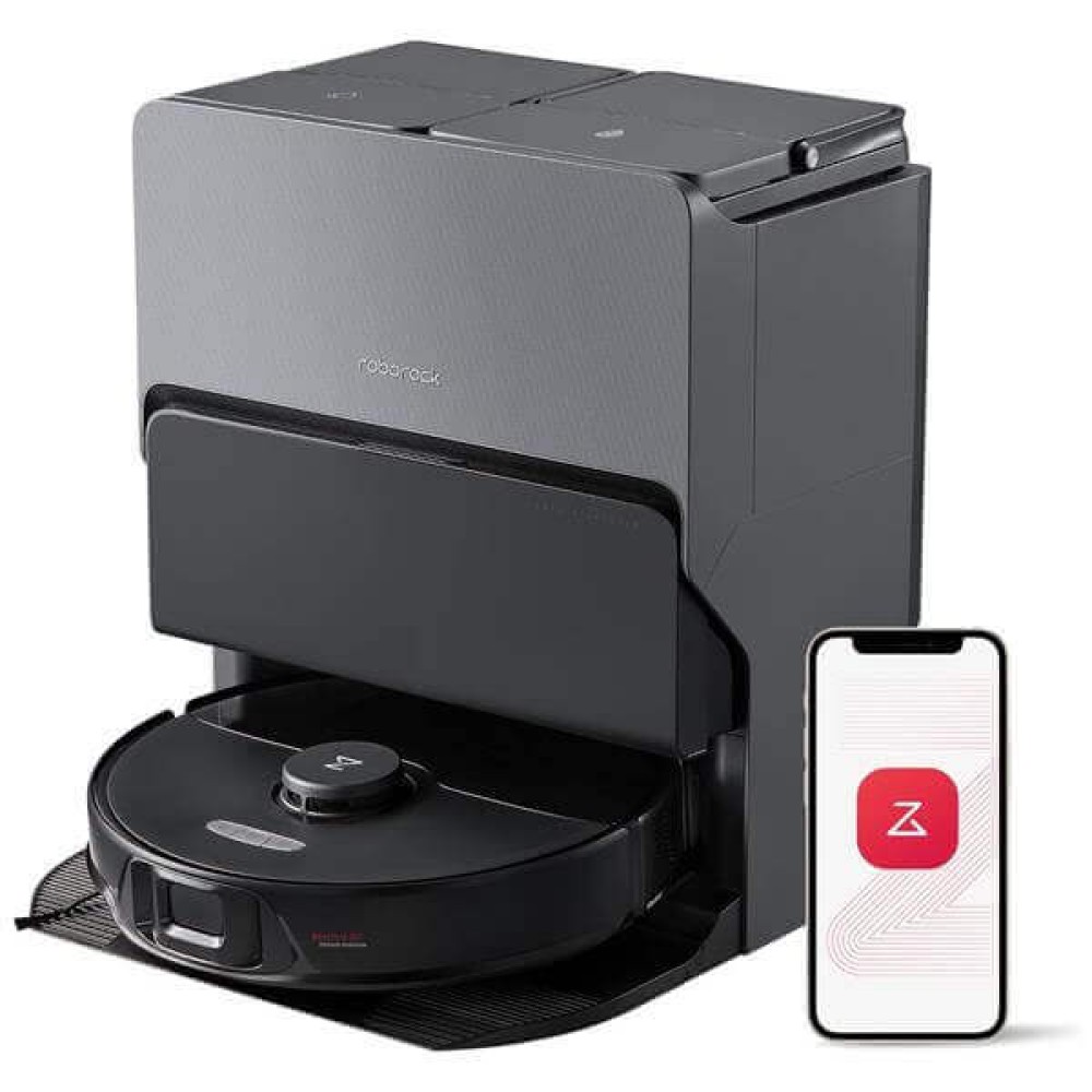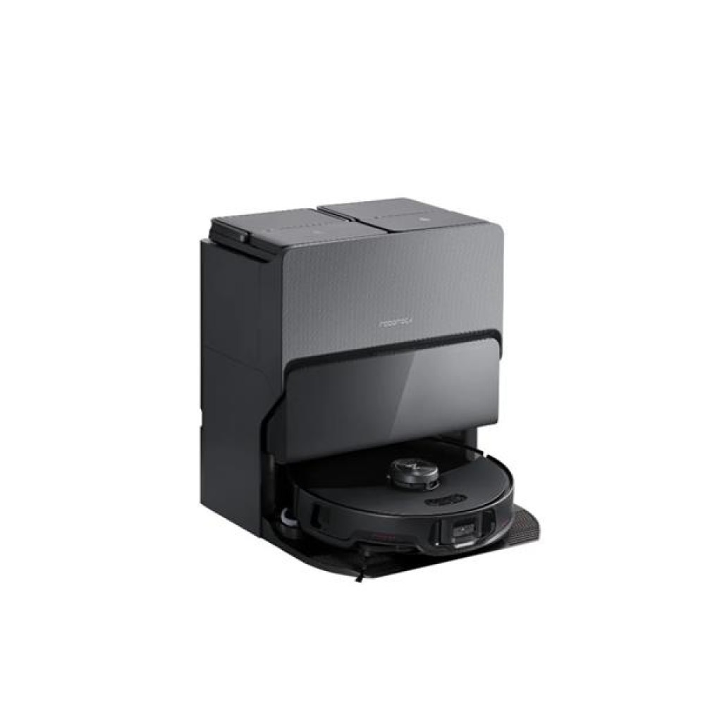 Умный робот-пылесос и мойщик Roborock S8 MaxV Ultra в черном цвете, с мощностью всасывания 10 000 Па. Оснащён системой влажной уборки VibraRise 3.0, выполняющей до 4000 движений в минуту, функцией дезинфекции горячей водой 60 °C, автоматическим поднятием мопа до 20 мм и самосушкой горячим воздухом. Поддерживает умное картографирование на базе технологии PreciSense LiDAR и систему Reactive AI 2.0 с распознаванием до 73 объектов, включая животных и обувь. Оснащён усовершенствованной док-станцией RockDock Ultra 8-в-1, выполняющей автоматическое опустошение контейнера для пыли, налив моющего средства (580 мл), с двойными щётками DuoRoller Riser, боковой щёткой FlexiArm, HEPA-фильтром, управлением через приложение и поддержкой голосовых ассистентов (“Hello Rocky”, Alexa, Siri, Google Home), а также памятью карт. Аккумулятор ёмкостью 5200 мА·ч обеспечивает до 180 минут работы и уборку площади до 300 м². Гарантия — 1 год.