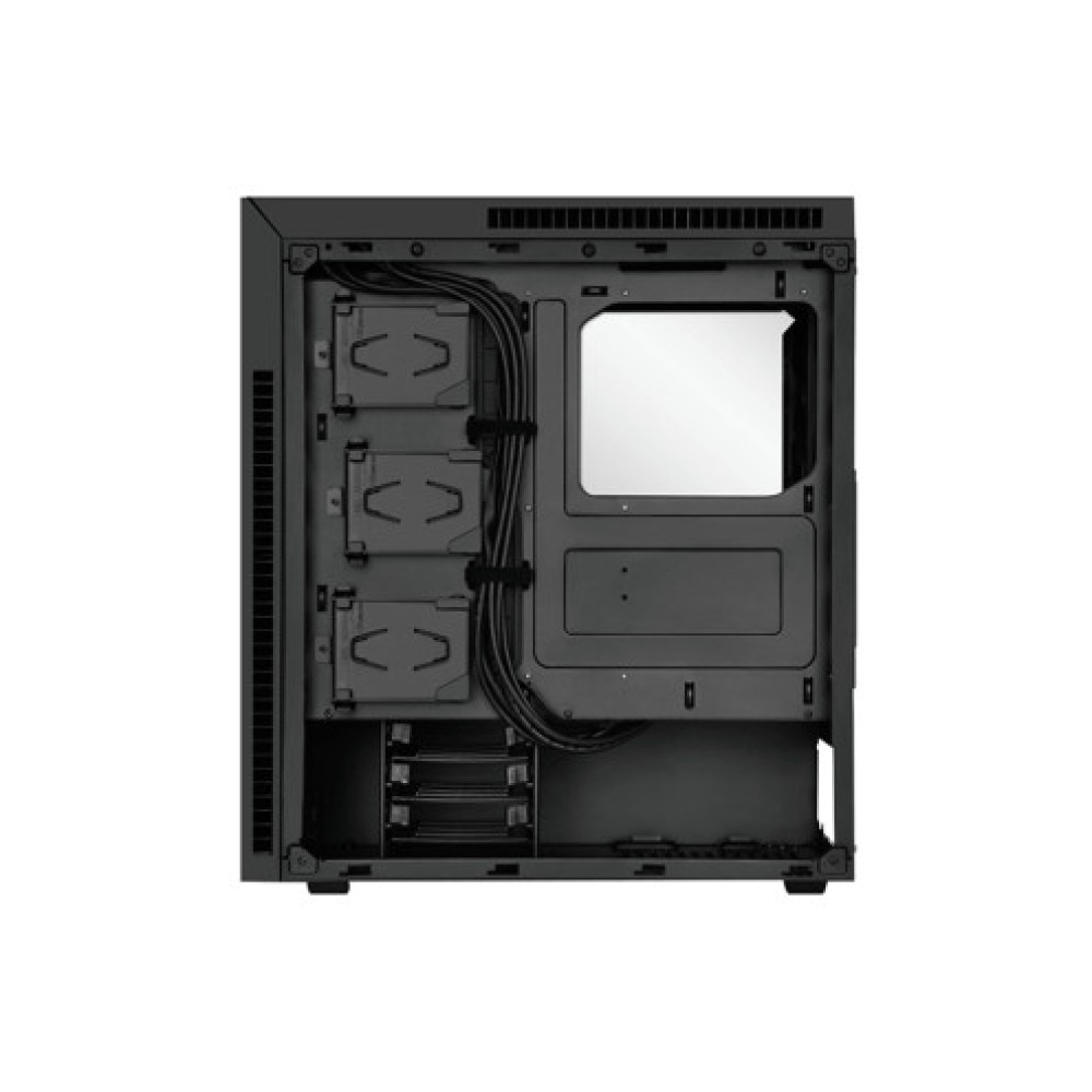 Корпус Mid Tower черного цвета, поддерживающий материнские платы формата ATX и Mini ITX. Его размеры составляют 222 мм в ширину, 510 мм в высоту и 467 мм в глубину. Корпус оснащен передними выходами USB 3.0, Earphone/Mic и USB Type-C, и предоставляет место для трех жестких дисков размером 3.5 дюйма и шести дисков размером 2.5 дюйма. Максимальная высота охлаждения для процессора составляет 170 мм, а его тепловой дизайн включает три вентилятора диаметром 140 мм.