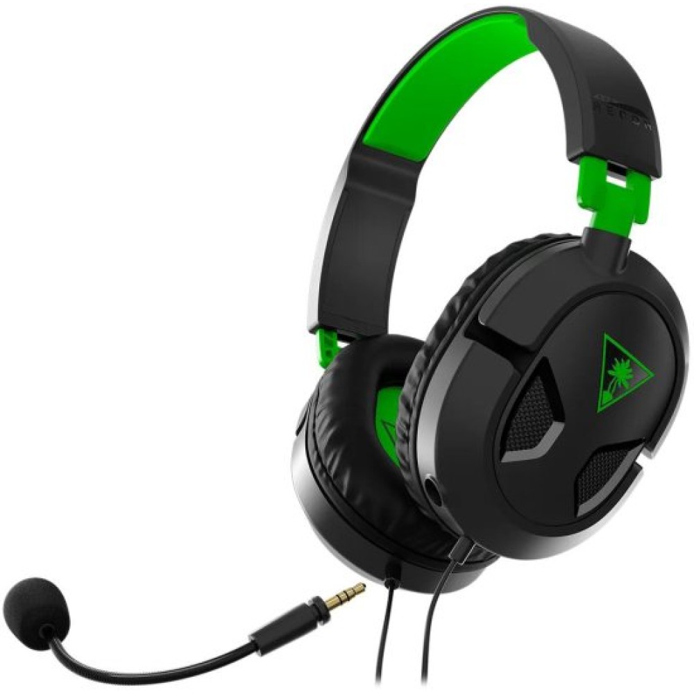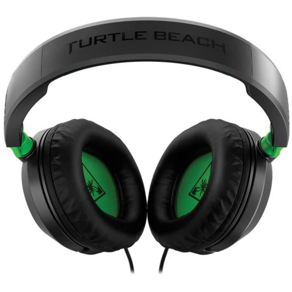 Проводные игровые наушники Turtle Beach серии Recon, модель Recon 50X, в чёрно-зелёном цвете, с полноразмерным (Over-Ear) дизайном и 40-мм драйверами с неодимовыми магнитами. Проводное подключение через кабель 3.5 мм. Частотный диапазон: 20Hz–20kHz. Оснащены съёмным всенаправленным микрофоном, регулировкой громкости и отключением микрофона с помощью встроенных на кабеле элементов управления. Амбушюры выполнены из синтетической кожи с поролоновым наполнителем. Совместимы с PS4 Pro, PS4, PS5, Xbox Series X|S, Xbox One, PC, Mac и мобильными устройствами. В комплект входит руководство по быстрому запуску. Гарантия — 1 год от официального импортёра.