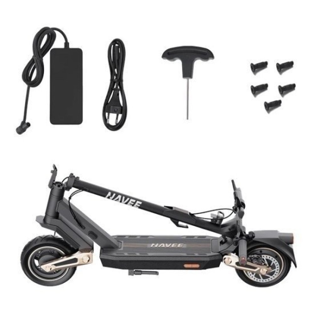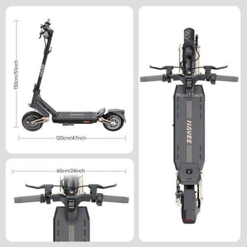 קורקינט חשמלי Navee דגם ST3, עם מהירות מרבית של כ־25 קמ״ש וטווח נסיעה של עד כ־60 ק״מ, מנוע בגלגל האחורי, מערכת בלימה הכוללת בלם תוף קדמי, בלם דיסק אחורי ובלם EABS, גלגלים בקוטר 10 אינץ׳ עם צמיגים ללא פנימית, מערכת מתלים כפולה לשיכוך זעזועים מסוג ™Damping Arm, תצוגה מובנית בכידון עם מידע על מהירות, מצב סוללה, קודי תקלה ועוד, כולל חיבור Bluetooth ואפליקציית Navee עם תמיכה ב־Apple Find My ו־Proximity Unlock, סוללה בקיבולת 477.36Wh עם זמן טעינה של כ־8 שעות, משקל כ־24.8 ק״ג, עמידות למים ואבק בתקן IPX5, מתקפל, ומתאים לרוכבים בגילאי 16–50. אחריות לשנה ע"י היבואן הרשמי (המילטון).